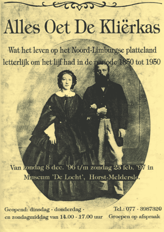 Met deze expositie laat de Locht zien wat er na zes museumjaren zoal in haar klerenkast ligt. Ons eigen beperkte bezit is voor deze tentoonstelling aangevuld met schenkingen en stukken die we even in bruikleen hebben gekregen. Het is een gevarieerde verzameling geworden van kleding en ander textiel dat door de mensen in Noord-Limburg werd